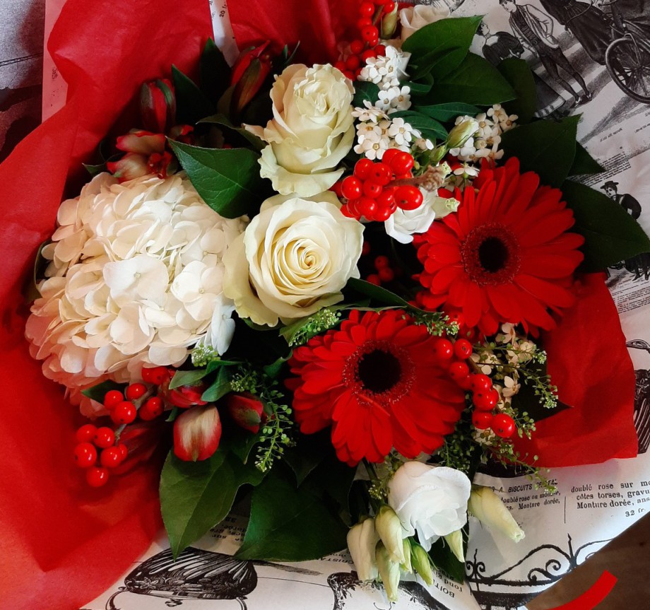 Bouquet vintage fleurs rouges et blanches